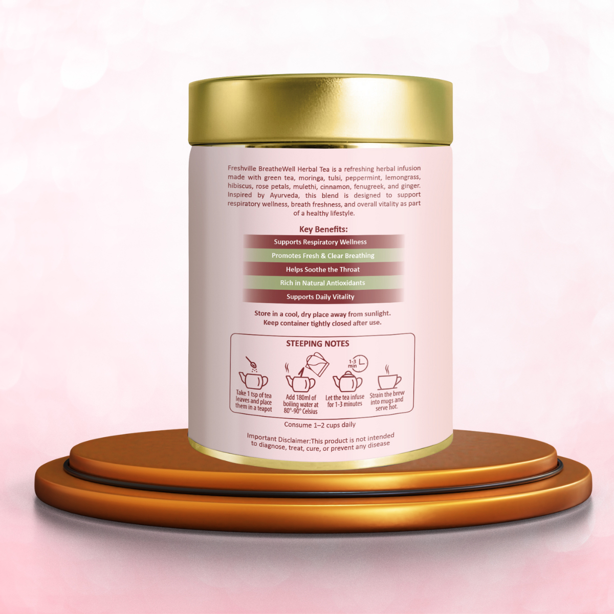 ಫ್ರೆಶ್ವಿಲ್ಲೆ ಬ್ರೀಥ್ ವೆಲ್ ಹರ್ಬಲ್ ಟೀ ಯೊಂದಿಗೆ ನಿಮ್ಮ ದೈನಂದಿನ ಕ್ಷೇಮ ದಿನಚರಿಯನ್ನು ಬೆಂಬಲಿಸಿ , ಇದು ಉಸಿರಾಟದ ಸೌಕರ್ಯ ಮತ್ತು ಒಟ್ಟಾರೆ ಚೈತನ್ಯವನ್ನು ಉತ್ತೇಜಿಸಲು ವಿನ್ಯಾಸಗೊಳಿಸಲಾದ ಎಚ್ಚರಿಕೆಯಿಂದ ರಚಿಸಲಾದ ಗಿಡಮೂಲಿಕೆ ಮಿಶ್ರಣವಾಗಿದೆ. ಸಾಂಪ್ರದಾಯಿಕವಾಗಿ ಅವುಗಳ ಶಾಂತಗೊಳಿಸುವ ಗುಣಲಕ್ಷಣಗಳಿಗೆ ಹೆಸರುವಾಸಿಯಾದ ಆಯ್ದ ಗಿಡಮೂಲಿಕೆಗಳಿಂದ ತಯಾರಿಸಲ್ಪಟ್ಟ ಈ ರಿಫ್ರೆಶ್ ಇನ್ಫ್ಯೂಷನ್ ನಿಮಗೆ ದಿನವಿಡೀ ಬೆಳಕು, ಸ್ಪಷ್ಟ ಮತ್ತು ಸಮತೋಲನವನ್ನು ಅನುಭವಿಸಲು ಸಹಾಯ ಮಾಡುತ್ತದೆ.