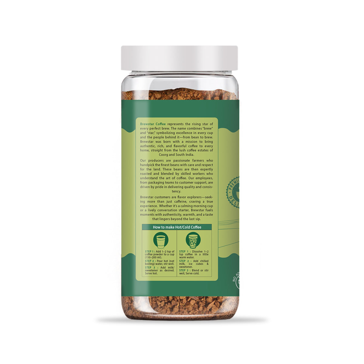 Brewstar believes in delivering the best range of coffee. Brewstar Cardamom Coffee has a precise blend of Arabica and Robusta beans to create the most delicious coffee flavour (The finest coffee beans are sourced from our optimal Coorg coffee farms).