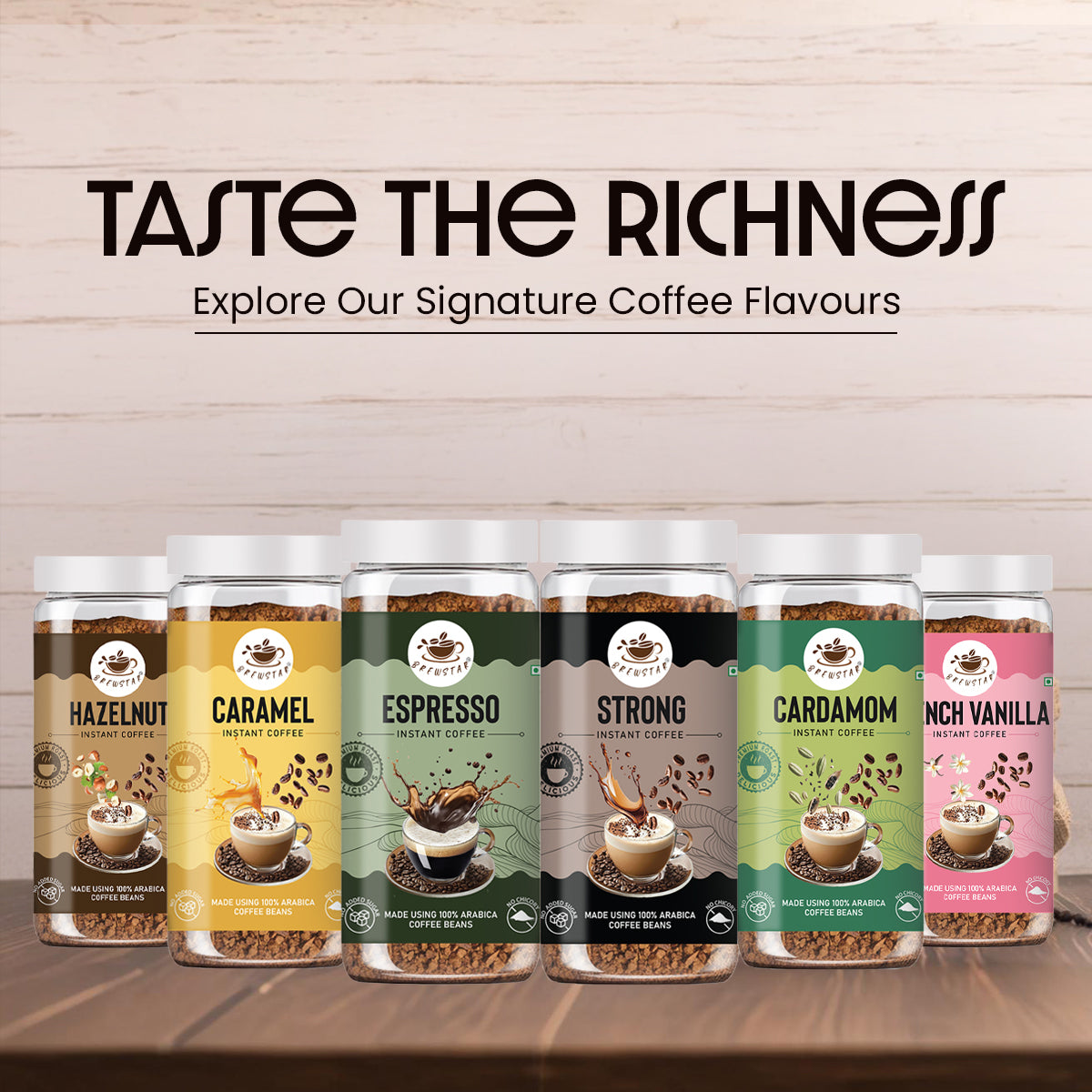 Brewstar believes in delivering the best range of coffee. Brewstar Royal Vanilla Coffee has a precise blend of Arabica and Robusta beans to create the most delicious coffee flavour (The finest coffee beans are sourced from our optimal Coorg coffee farms).