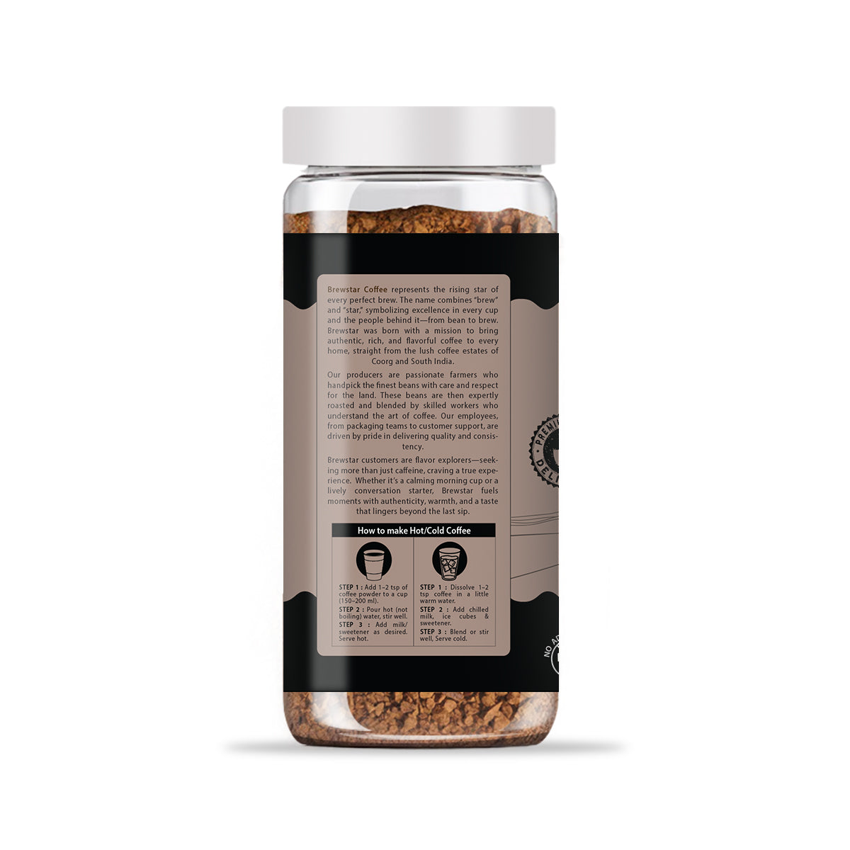 Brewstar believes in delivering the best range of coffee. Brewstar Strong Coffee has a precise blend of Arabica and Robusta beans to create the most delicious coffee flavour (The finest coffee beans are sourced from our optimal Coorg coffee farms).