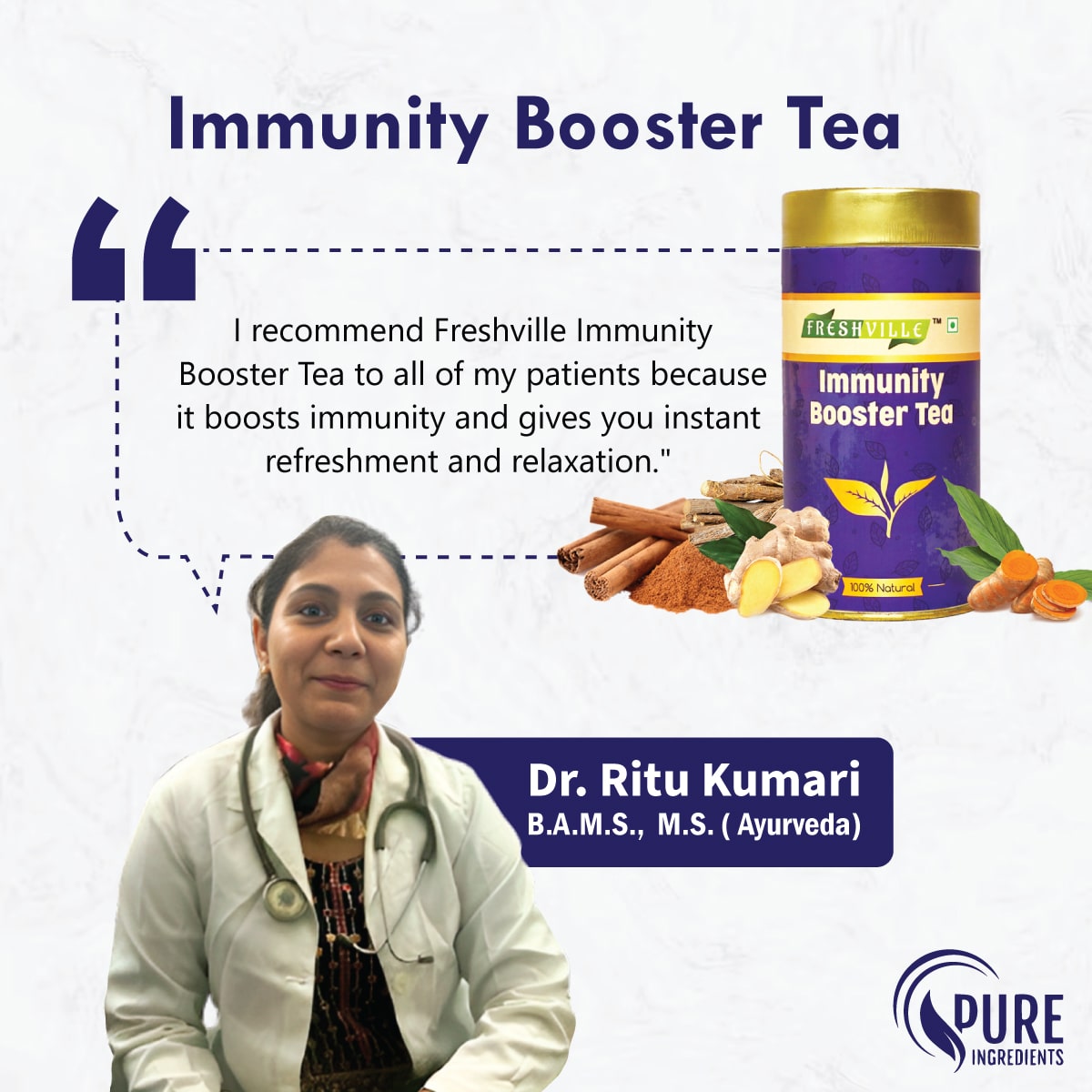 | Key Ingredients | Turmeric, Cinnamon, Ginger, Clove, Ashwagandha, Mintfennel, Moringa, Tulsi, Giloy, Amla, Green Tea. |