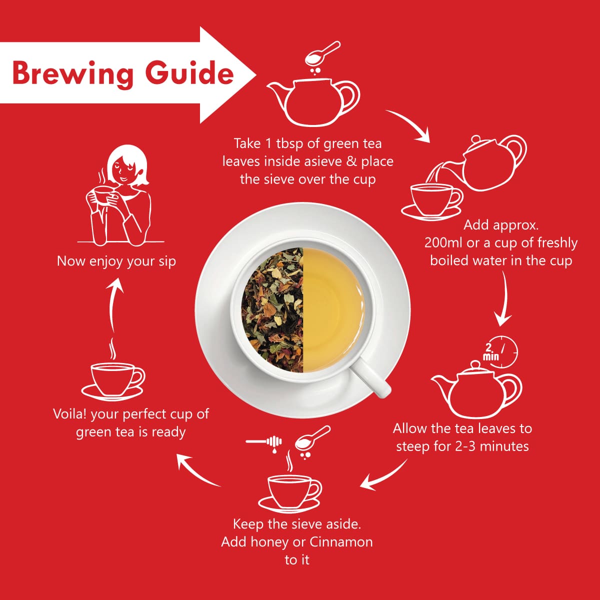 Serving: Enjoy the tea hot or cold. It can be consumed once or twice a day. -