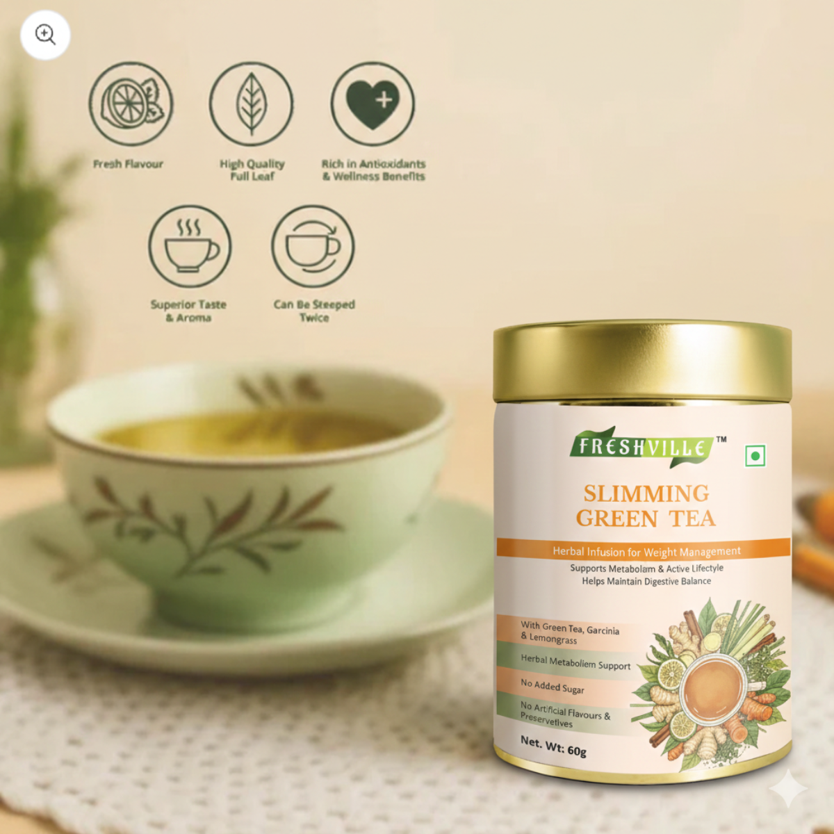 சுறுசுறுப்பான மற்றும் சீரான வாழ்க்கை முறையைப் பூர்த்தி செய்ய வடிவமைக்கப்பட்ட கவனமாக வடிவமைக்கப்பட்ட மூலிகை கலவையான ஃப்ரெஷ்வில் ஸ்லிம்மிங் டீ மூலம் உங்கள் நல்வாழ்வு பயணத்தை இயற்கையாகவே ஆதரிக்கவும் . தேர்ந்தெடுக்கப்பட்ட இயற்கை பொருட்களால் தயாரிக்கப்படும் இந்த புத்துணர்ச்சியூட்டும் தேநீர், ஆரோக்கியமான பழக்கங்களைப் பராமரிக்கவும், நாள் முழுவதும் லேசாக உணரவும் விரும்புவோருக்கு ஏற்றது.