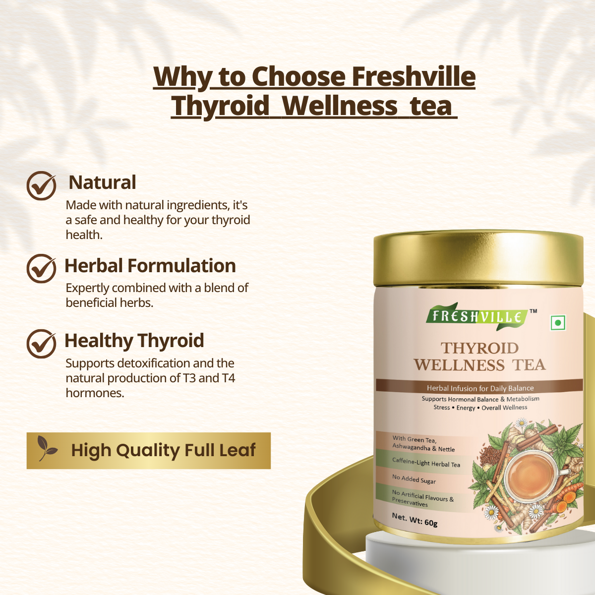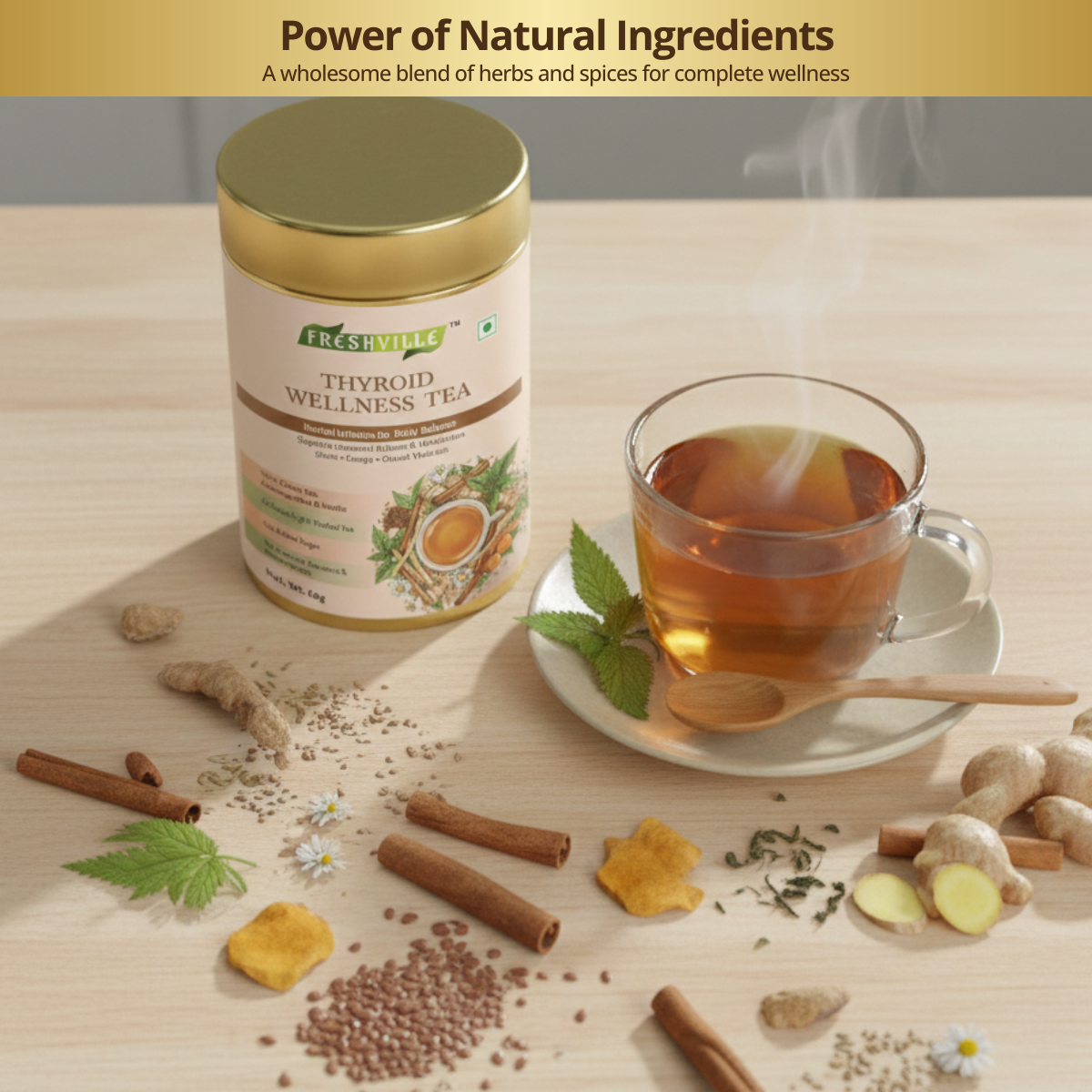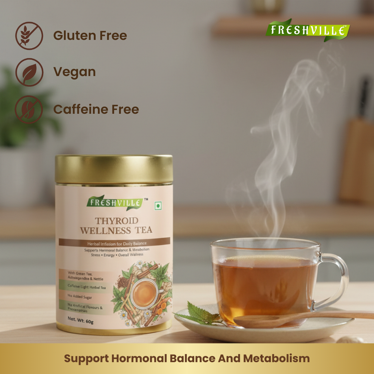 தைராய்டு சுரப்பியின் உயிர்ச்சக்திக்கு இயற்கையின் இனிமையான தொடுதலான ஃப்ரெஷ்வில் தைராய்டு வெல்னஸ் டீயுடன் உங்கள் உடலின் இணக்கத்தை மீண்டும் கண்டறியவும்.